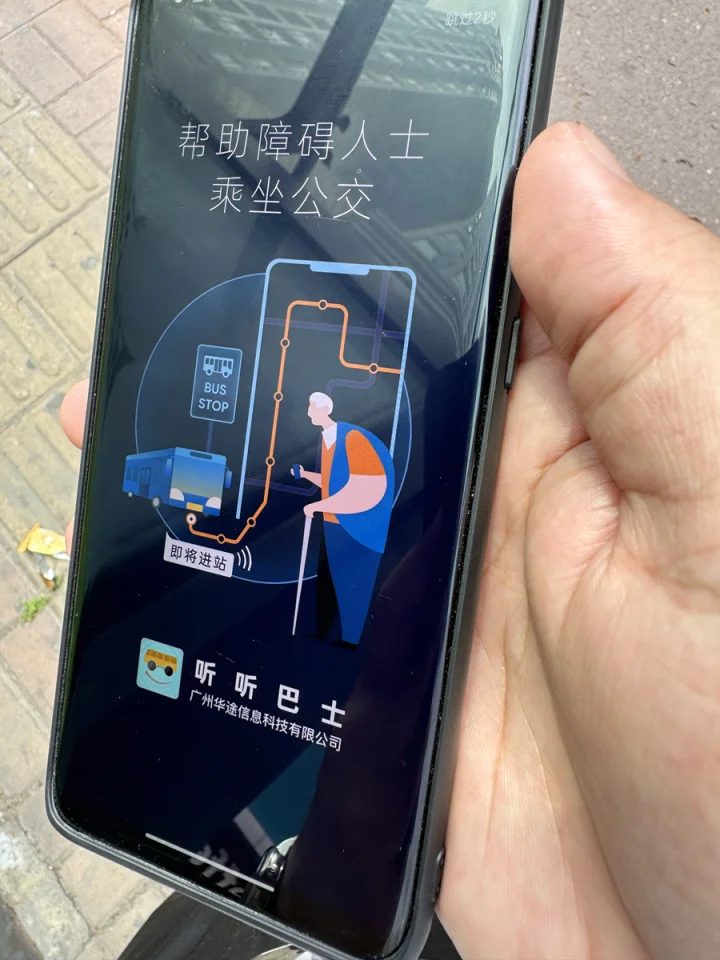 視障人士在手機(jī)上安裝聽(tīng)聽(tīng)巴士APP獲取公交基礎(chǔ)信息以及實(shí)時(shí)運(yùn)營(yíng)信息。
