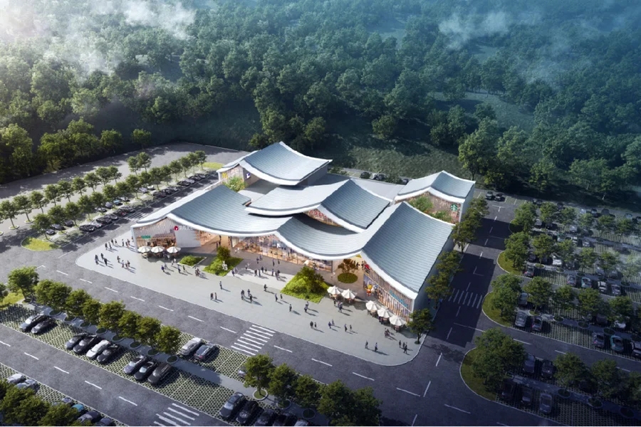 惠州西服務(wù)區(qū)總體建筑面積約1.2萬平方米,分為東、西服務(wù)區(qū)。項(xiàng)目借鑒豐湖書院的文化內(nèi)涵和建筑特色,打造全省獨(dú)有的書院主題服務(wù)區(qū)。服務(wù)樓結(jié)構(gòu)靈感源自書院及惠州傳統(tǒng)民居,以“啟惠之書”為主題,屋頂設(shè)計(jì)為翻開的書本形態(tài),主體結(jié)構(gòu)采用木格柵、鋁板、金屬板屋面等材料,整體視覺明亮通透,具有書院風(fēng)格的獨(dú)特韻味。