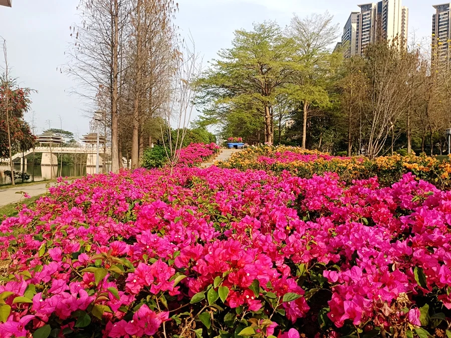 位于市區(qū)金山湖公園的簕杜鵑花。