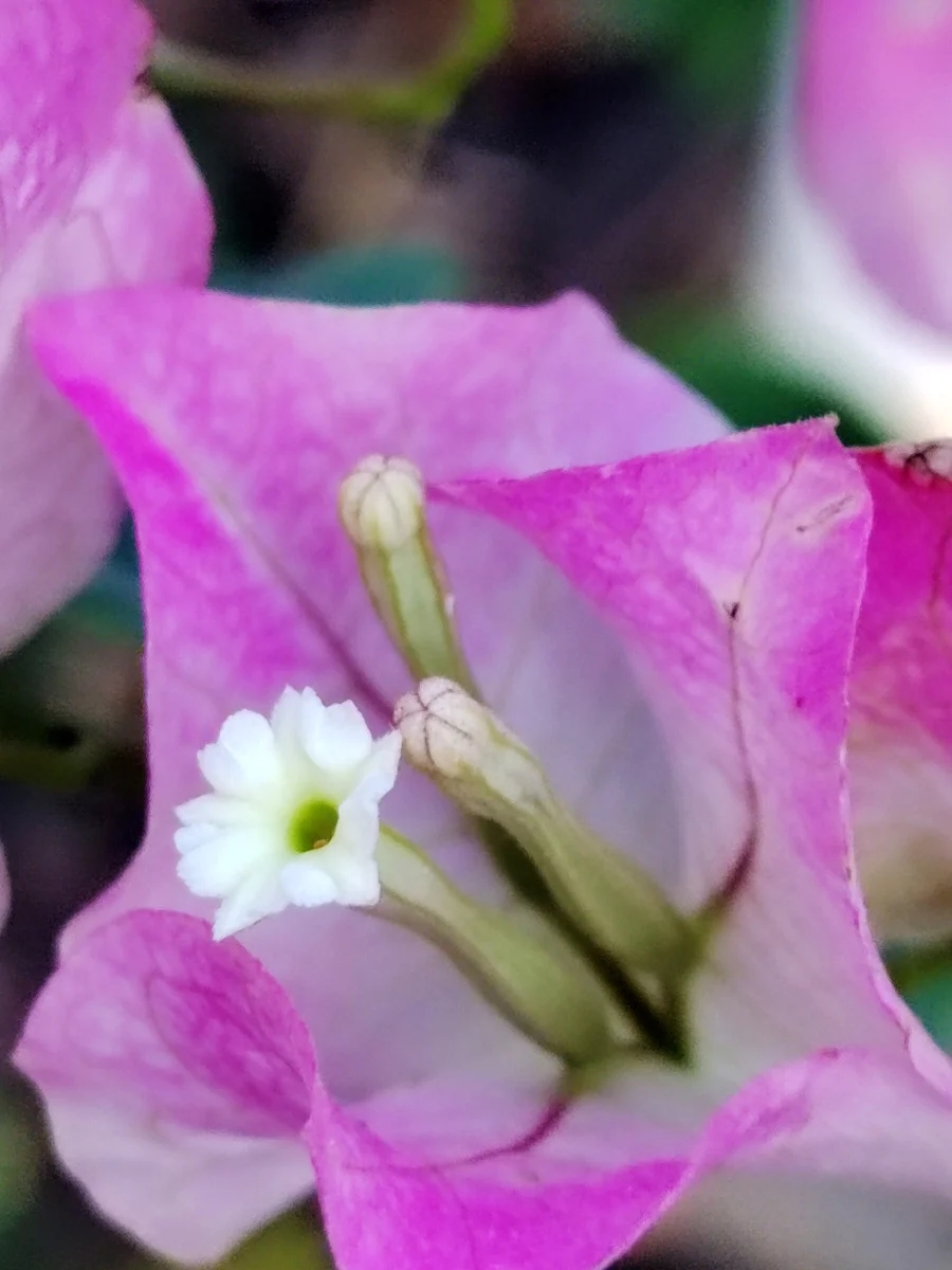 通常簕杜鵑每個苞片中脈上的花被管都頂著個類似火柴頭的花蕾,花蕾打開,花瓣頂端淺裂,也是其真正的花朵。