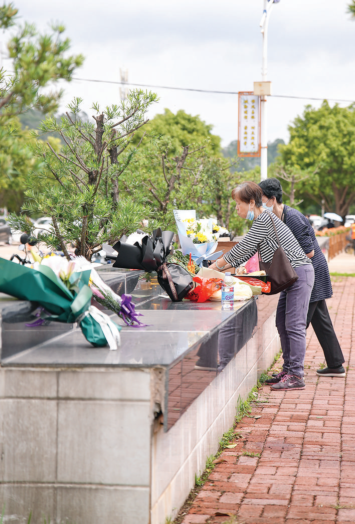 在惠州市殯儀館的無(wú)煙祭拜區(qū)內(nèi),許多市民使用鮮花、水果進(jìn)行無(wú)煙祭拜。惠州日?qǐng)?bào)記者羅劍業(yè) 攝