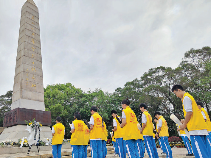 4月4日,惠城區(qū)豐山公園內(nèi)的東江人民革命烈士紀(jì)念碑前迎來(lái)祭掃高峰,許多市民或單位自發(fā)前往祭掃,緬懷革命先烈的豐功偉績(jī)。一批批市民懷著對(duì)革命英烈的崇高敬意,敬獻(xiàn)鮮花,默哀致敬。