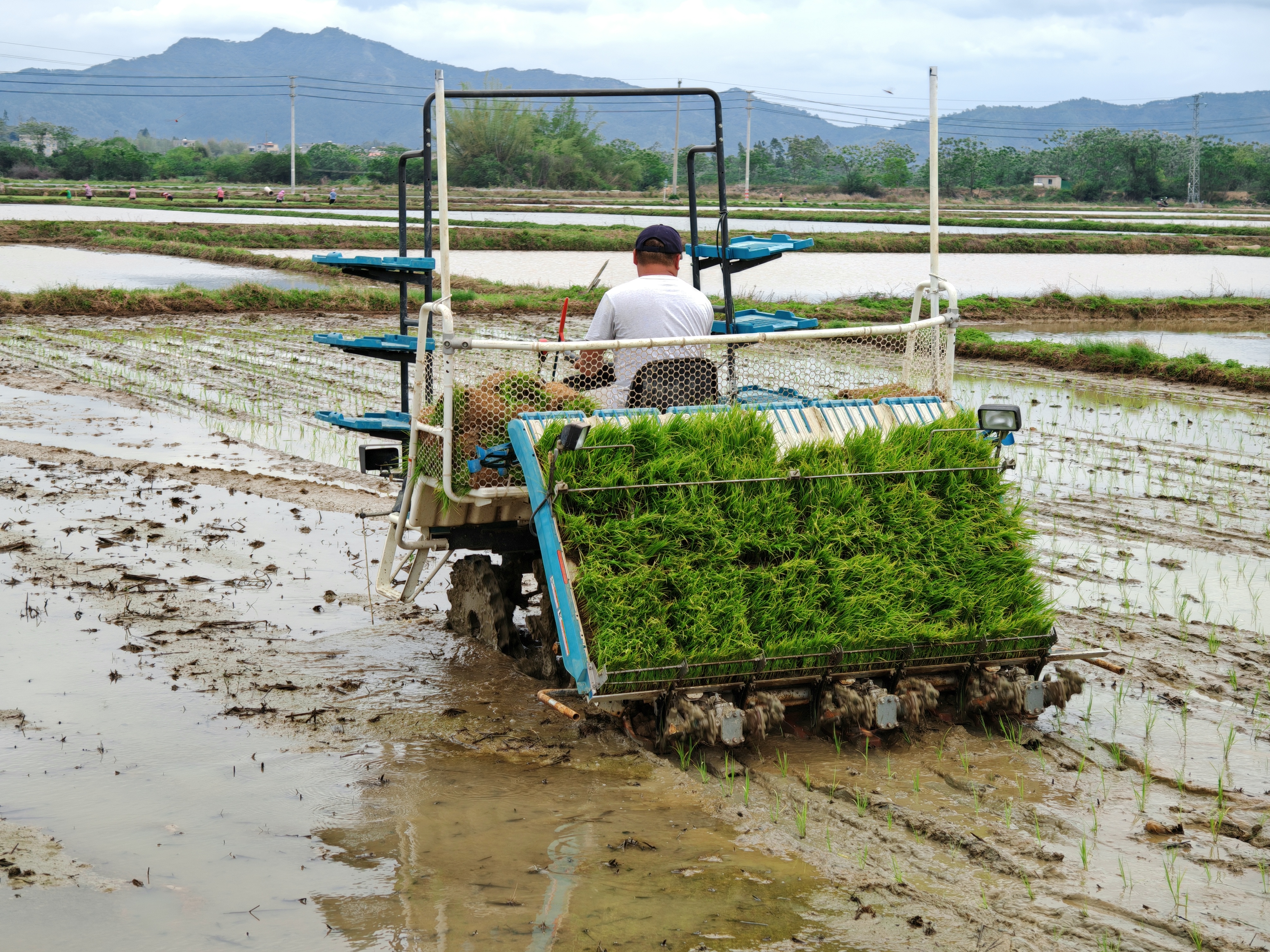 最近,惠州市國盛農(nóng)機專業(yè)合作社負責人陳國憲輾轉(zhuǎn)于惠城區(qū)、仲愷高新區(qū)等地,忙著為種糧大戶提供農(nóng)機服務(wù)。只見他駕駛著高速插秧機,在水田間來來回回,插秧機駛過,一株株綠油油的秧苗扎進田間,為農(nóng)田披上“綠衣”。