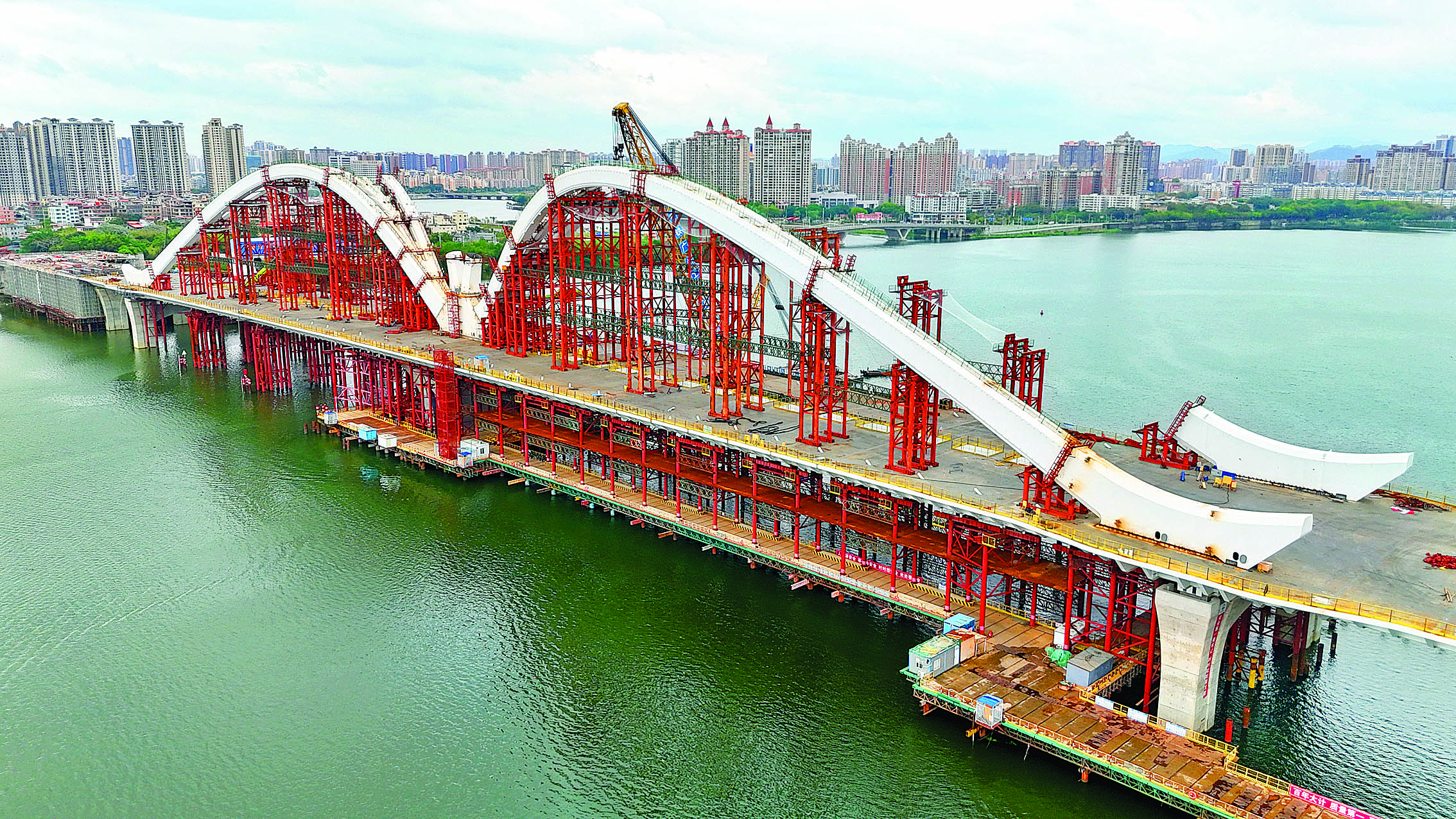 目前,鵝城大橋樁基施工全部完成,江東一號(hào)路A匝道及輔道已通車(chē),主橋下部架構(gòu)及鋼梁架設(shè)已完成,拱肋已完成30個(gè)節(jié)段,鵝塔已完成2個(gè)節(jié)段,大橋計(jì)劃今年建成通車(chē)。
