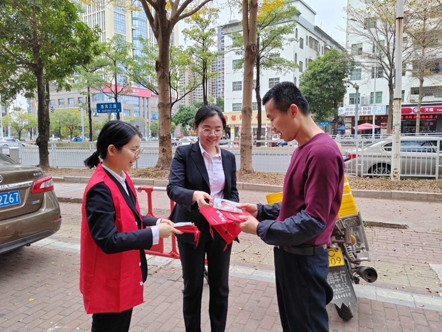 惠州工行工作人員深入社區(qū)街道,開展整治拒收人民幣現(xiàn)金宣傳活動。 惠州工行供圖