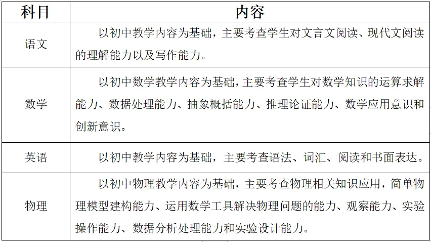 語(yǔ)文(120分)、數(shù)學(xué)(120分)、英語(yǔ)(100分)、物理(100分),滿分440分。