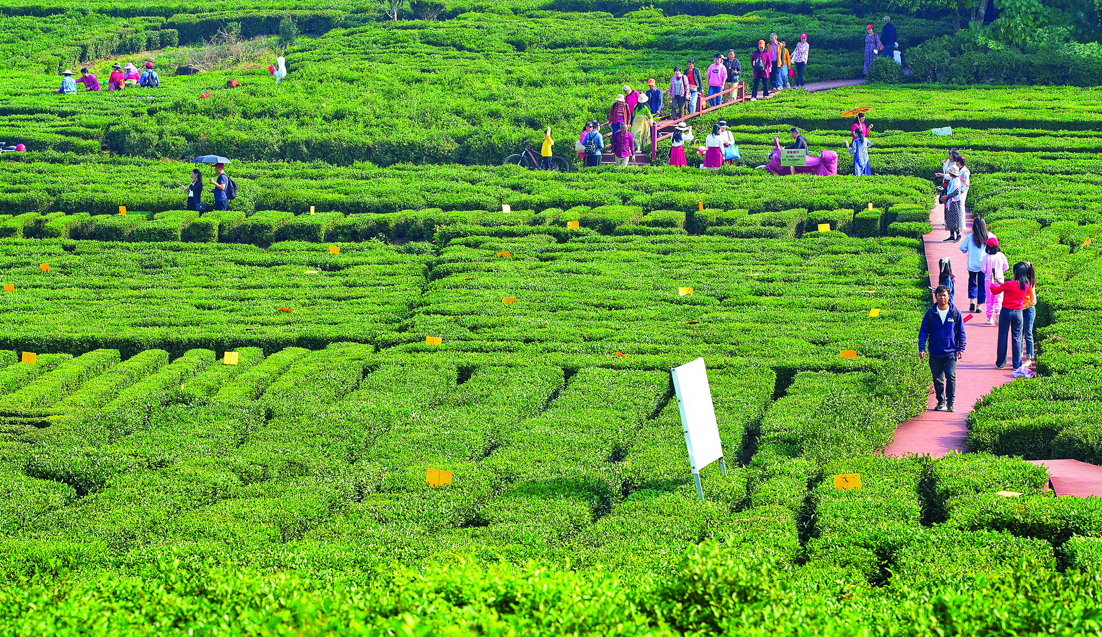 上午10時許,博羅縣柏塘鎮(zhèn)萬畝茶園開始出現游人身影。他們從一輛輛大巴車上下來,每個人都面露笑容,“空氣真好,一眼望去綠油油的,心曠神怡!秉S先生已經退休,平時喜歡游山玩水,這次跟朋友組團來游玩,他們或穿梭在茶園中間,拍照、賞景,或沿著茶園棧道、茶園觀光綠道閑庭漫步。