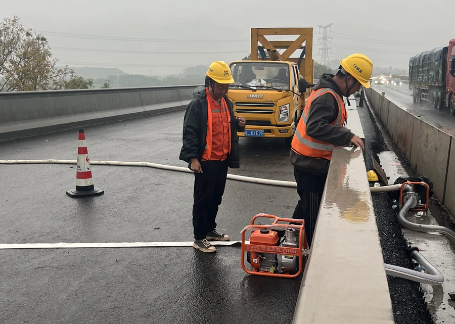 4月22日,受連日暴雨影響,惠河高速改擴(kuò)建項(xiàng)目施工現(xiàn)場(chǎng)多處出現(xiàn)大量積水,路側(cè)邊坡存在滑溜風(fēng)險(xiǎn)。為做好防汛防險(xiǎn)工作,中交路建承建的T8標(biāo)項(xiàng)目部成立防汛應(yīng)急黨員突擊隊(duì),開(kāi)展道路積水抽排、水碼灌水、淤泥清理、加寬排水溝等工作,清理6處積水點(diǎn)明溝排水,加固2處邊坡,全段抽水8處,清理橫向排水口雜物78處。