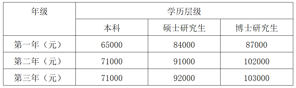 學(xué)員不需繳納培訓(xùn)費(fèi),社會(huì)培訓(xùn)學(xué)員簽訂勞動(dòng)合同和培訓(xùn)協(xié)議,按照國(guó)家規(guī)定購(gòu)買(mǎi)36個(gè)月的“五險(xiǎn)一金”,由我院發(fā)放待遇,如有減免規(guī)培時(shí)間的按協(xié)議執(zhí)行。委培學(xué)員簽訂委培三方培訓(xùn)協(xié)議。待遇按人員類(lèi)別如下: