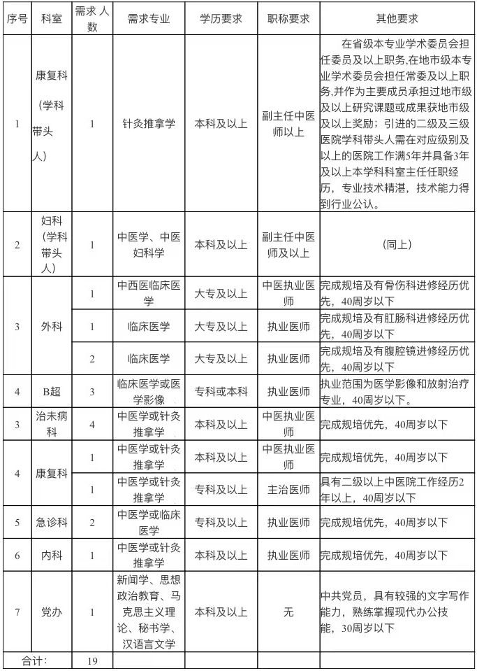 3.惠城區(qū)中醫(yī)醫(yī)院招聘編外人員19名