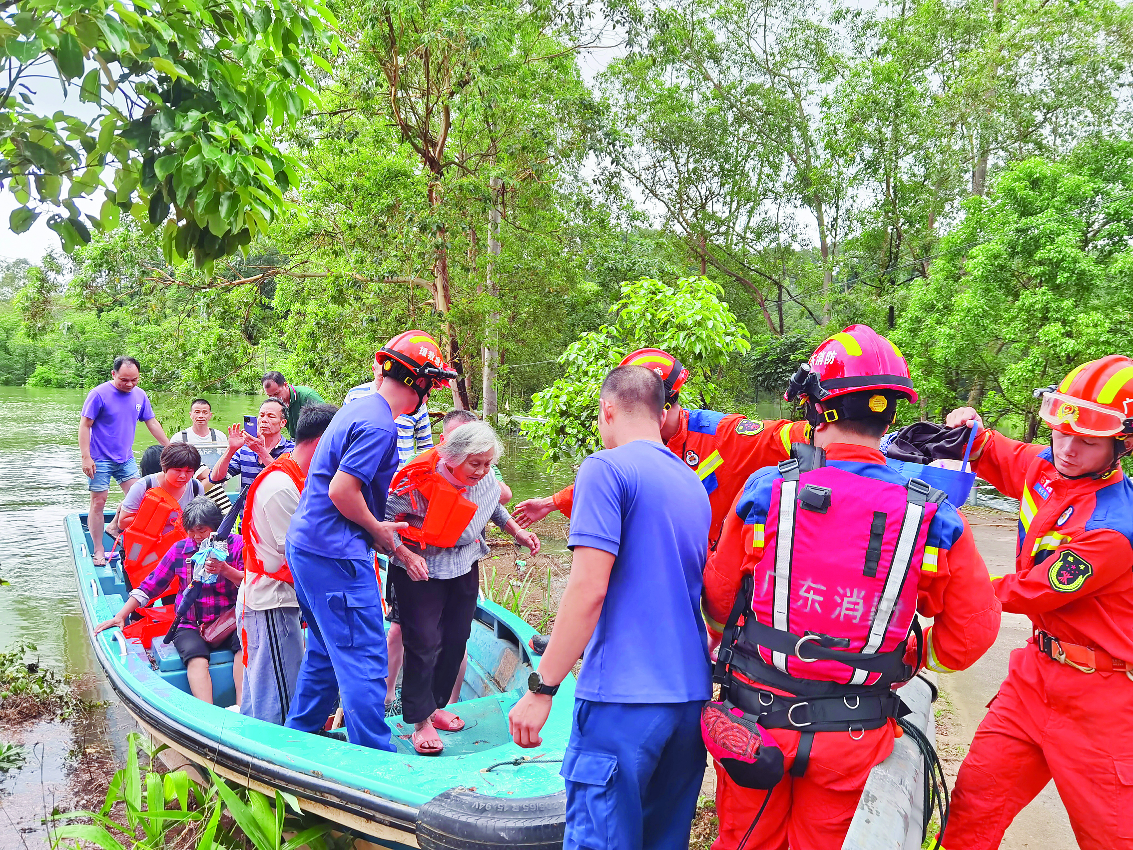 “謝謝你們,終于安全了!28日13時40分許,在博羅縣羅陽消防救援站、博羅縣公莊鎮(zhèn)專職消防隊救援人員以及公莊鎮(zhèn)當?shù)攸h員干部的共同努力下,分兩批次用皮筏艇,涉水轉(zhuǎn)移水東陂林場內(nèi)的群眾30多人。