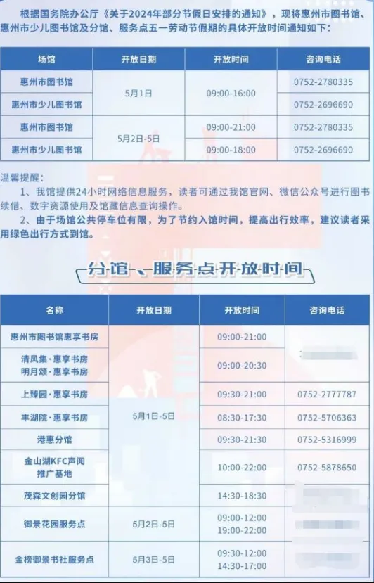 *注:目前惠陽區(qū)及龍門縣的圖書館開放時間未公布!