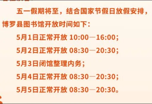 根據(jù)《國務院辦公廳關于2024年部分節(jié)假日安排的通知》文件精神,并結合圖書館實際情況,現(xiàn)將2024年勞動節(jié)假期開放時間及功能室安排如下: