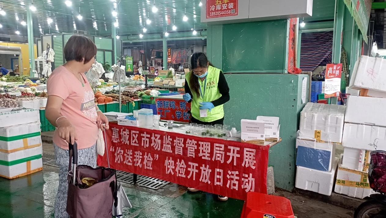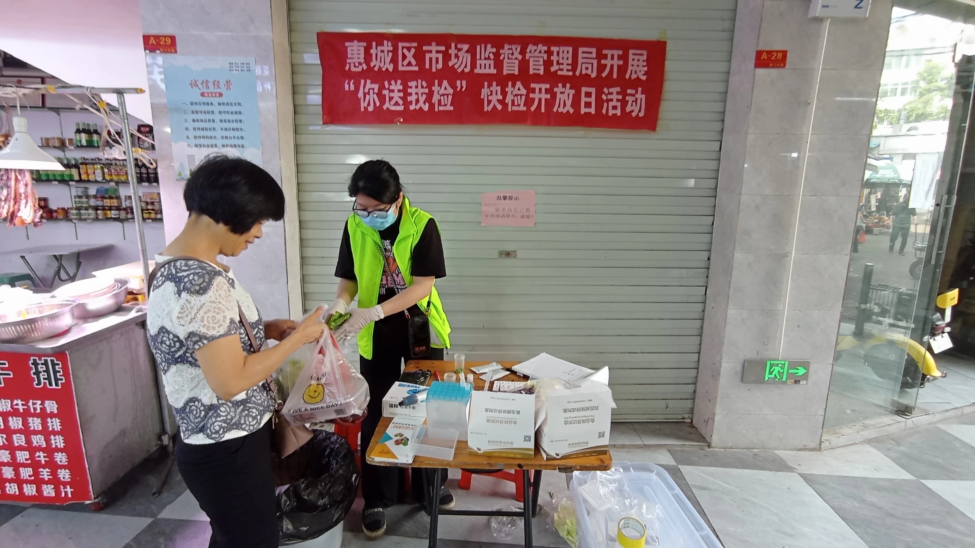 惠州日?qǐng)?bào)訊 (記者香金群 通訊員鄭嘉澤)民以食為天,食以安為先,蔬菜肉類吃得安全不安全,一直是群眾關(guān)注的民生焦點(diǎn)。為守護(hù)群眾“舌尖上的安全”,擴(kuò)寬公眾參與食品安全監(jiān)管渠道,惠州市場(chǎng)監(jiān)管系統(tǒng)持續(xù)開(kāi)展“你送我檢”“快檢開(kāi)放日”等便民活動(dòng),選取中心城區(qū)、人流量大、消費(fèi)量大的農(nóng)貿(mào)市場(chǎng),免費(fèi)對(duì)消費(fèi)者送檢的自購(gòu)食用農(nóng)產(chǎn)品進(jìn)行現(xiàn)場(chǎng)快速檢測(cè),并告知檢測(cè)結(jié)果,及時(shí)解答食品安全疑惑,保障群眾“菜籃子”安全。