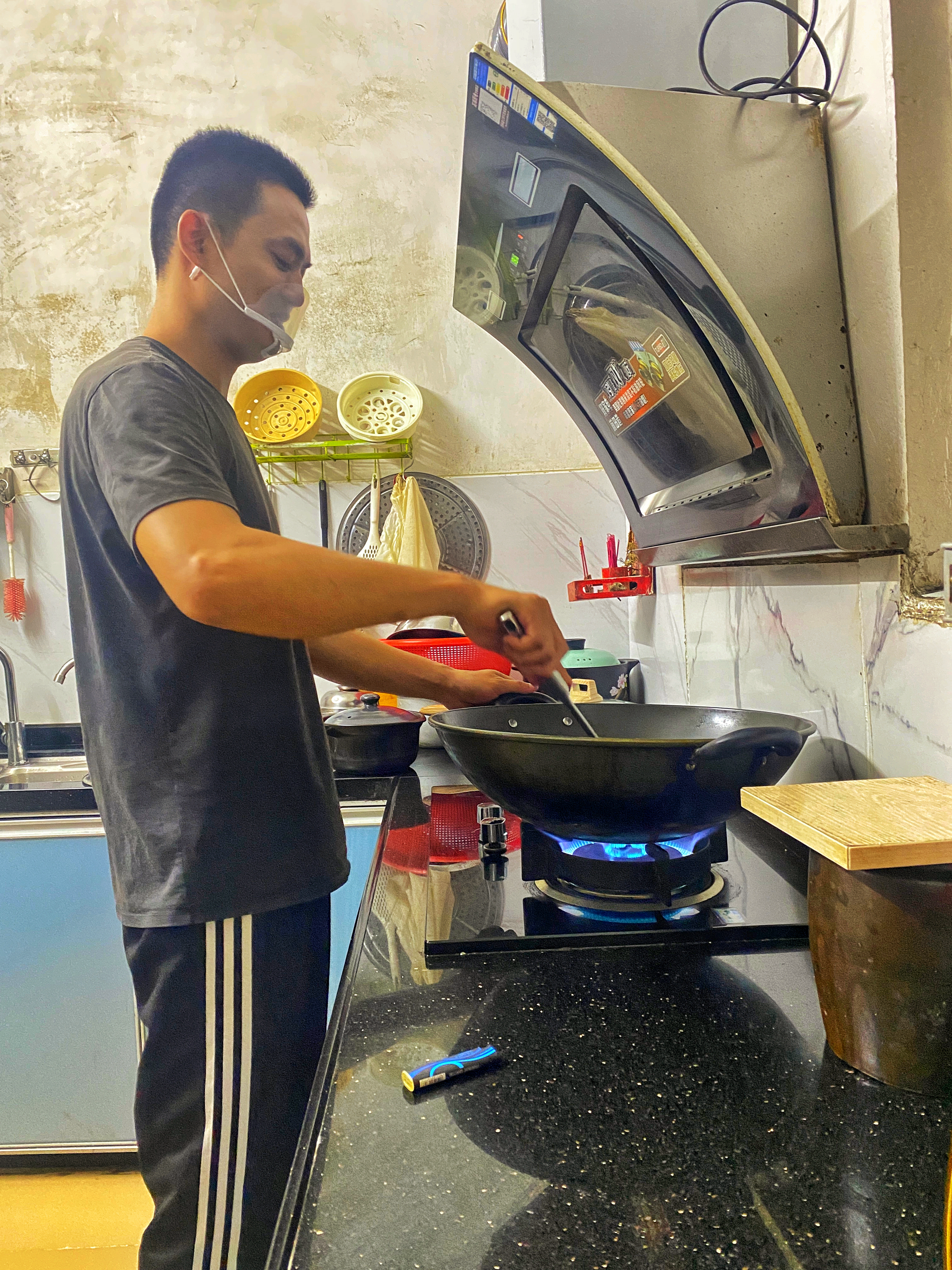 精湛的手藝讓鄔方定贏得不少顧客的稱贊,有時候雇主還會邀請他一起吃飯,但他都拒絕了。做完飯,他和隊友一起收拾廚房、灶臺、地板,打掃干凈就回家。他們不做洗碗業(yè)務,“因為不知道他們會吃多久”。