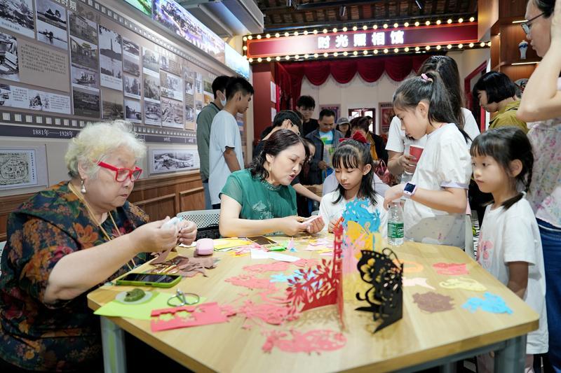 惠城非遺展示館現(xiàn)場(chǎng)剪紙教學(xué);葜萑?qǐng)?bào)記者陳濤 攝