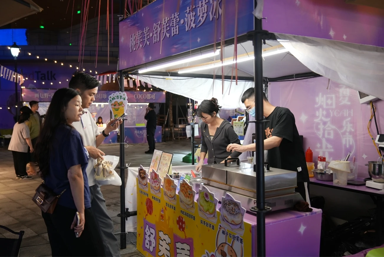 夜幕降臨,華燈初上,位于惠城區(qū)港惠羅浮里中心廣場“煙火拾光· 夏yeah樂市”市集,充滿了煙火氣。在這里,不僅小吃薈萃,美食云集,廣場燈火斑斕,三五成群的好友圍桌而坐,談笑風(fēng)生……