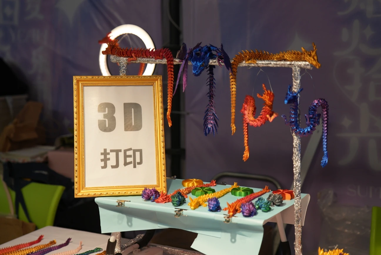 夜市中正在售賣3D打印的裝飾品。