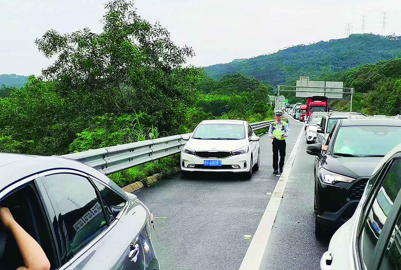 “本想趁著‘五一’假期放飛心情,沒想到爆胎了,困在高速公路上,幸好有你們幫忙……”5月1日15時許,市公安局交警支隊高二大隊執(zhí)勤民警巡邏至從莞高速(往廣州方向)58公里路段時,發(fā)現(xiàn)一輛小車停靠在應(yīng)急車道上未做安全防護(hù)措施,存在較大安全隱患。民警立即將警車停到該車后面,做好安全防護(hù)措施后上前了解情況。