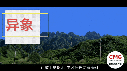 1.山坡上的樹木、電線桿等突然歪斜。
