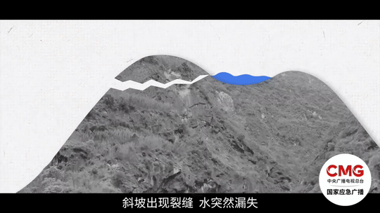 3.山體斜坡出現(xiàn)裂縫,原本有水卻突然漏失,坡腳有渾濁的泉水涌出。