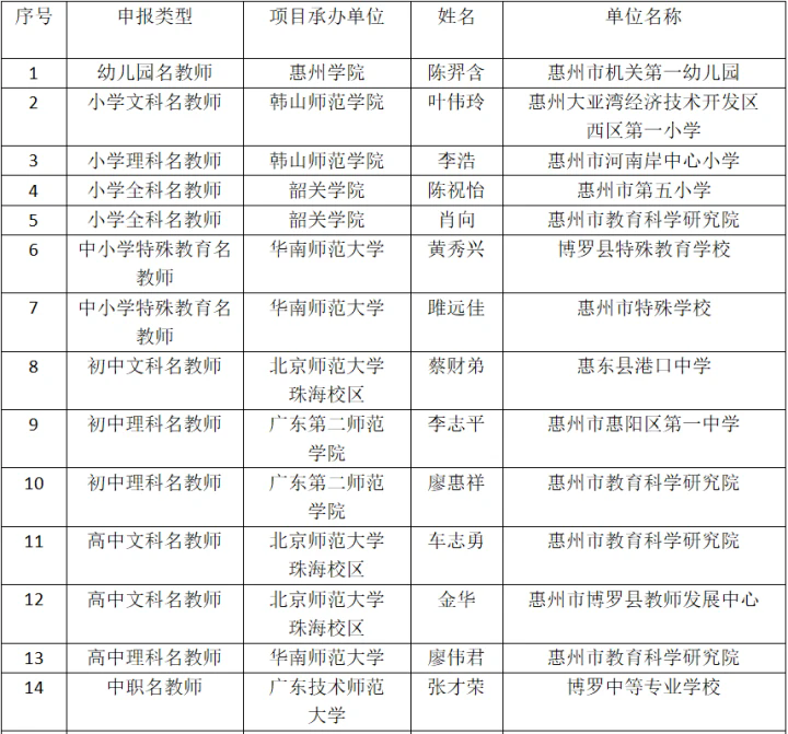 省級(jí)培養(yǎng)項(xiàng)目(2024-2026年)培養(yǎng)學(xué)員名單(惠州部分)