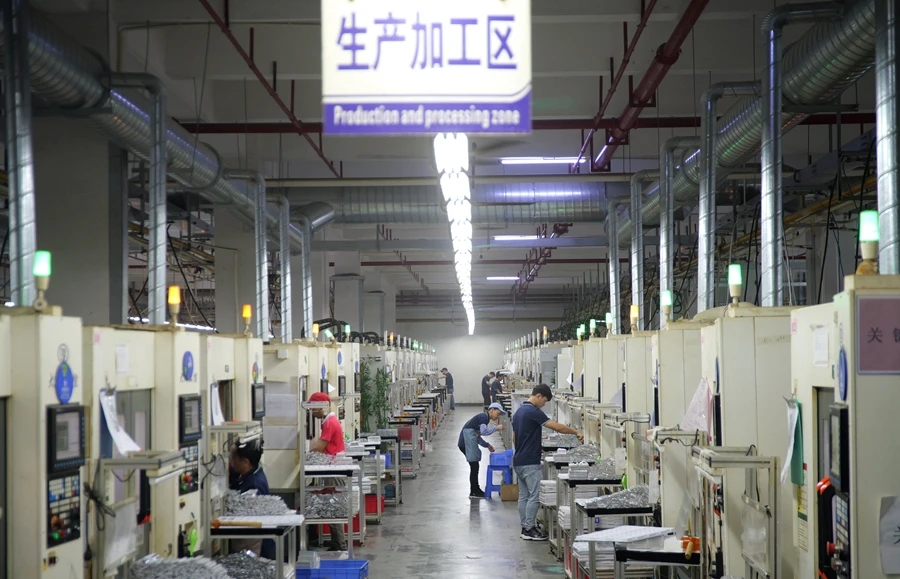 小微企業(yè)政銀擔(dān)專項(xiàng)貸款為為華科技發(fā)展提供強(qiáng)勁動力。這是該企業(yè)生產(chǎn)加工區(qū)。