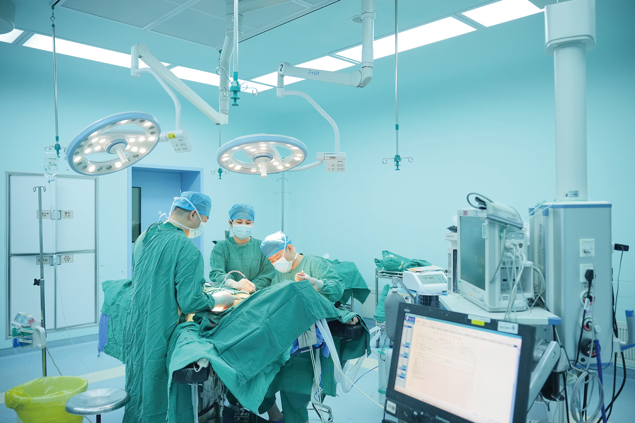 市中心人民醫(yī)院醫(yī)護人員為患者做手術(shù)。