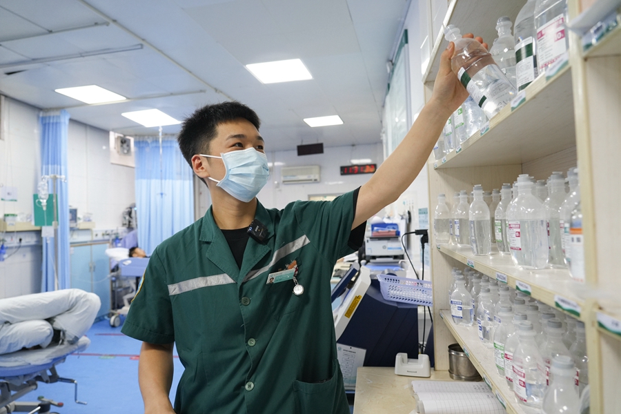 急診科是醫(yī)院人流量大、搶救和管理工作繁重的“最前鋒”科室,這里每一天都是“戰(zhàn)場(chǎng)”,這里的醫(yī)護(hù)與時(shí)間賽跑、與死神較量,24小時(shí)為生命站崗。王海波表示,作為急診科護(hù)士,他需要以最快的速度精準(zhǔn)分診,保障病人及時(shí)獲得有效治療。