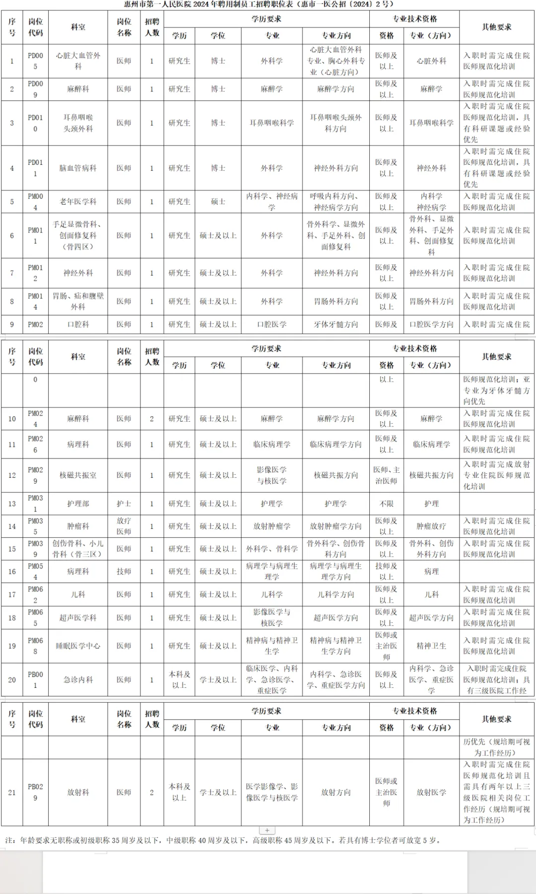 惠州市中心人民醫(yī)院2024年第二批臨聘人員招聘