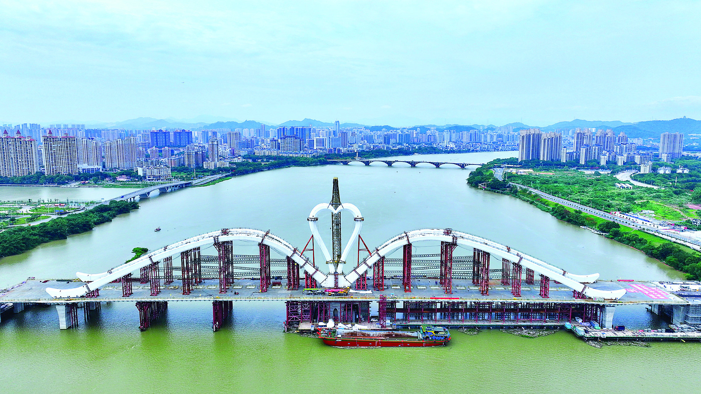 據(jù)介紹,鵝城大橋全長1119.5米,采用鋼梁鋼拱結(jié)構(gòu),按雙向6車道設(shè)計。大橋以東江之“水”、惠州之“鵝”為主要元素進行設(shè)計,將于今年建成通車。鵝城大橋建成后,將成為惠州市區(qū)第七座跨東江大橋,有效緩解東江大橋交通壓力,成為聯(lián)動東江兩岸惠民興業(yè)的新動脈。