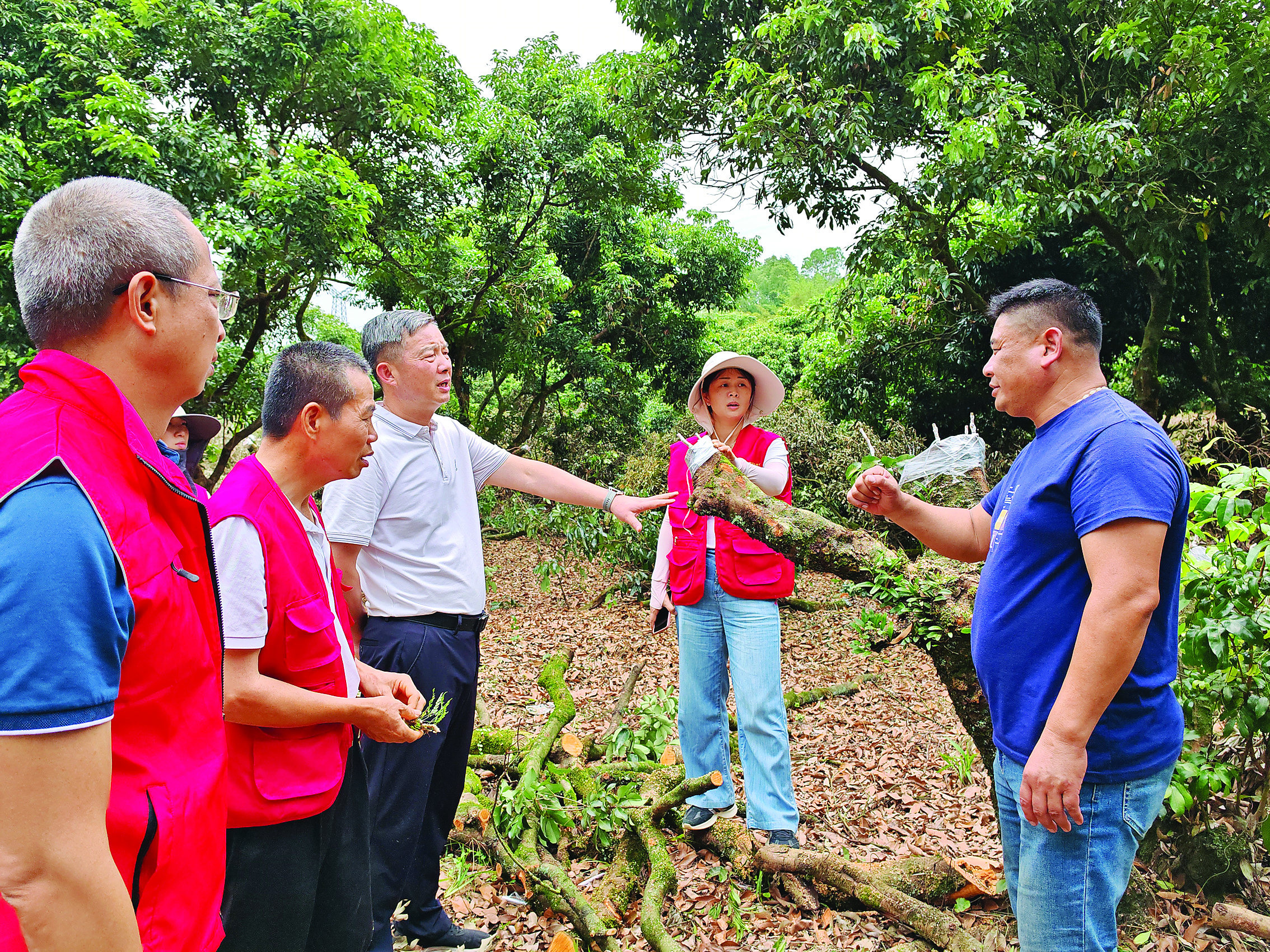 市農(nóng)業(yè)農(nóng)村綜合服務(wù)中心農(nóng)技服務(wù)“輕騎兵”指導(dǎo)荔枝種植戶開展高接換種。