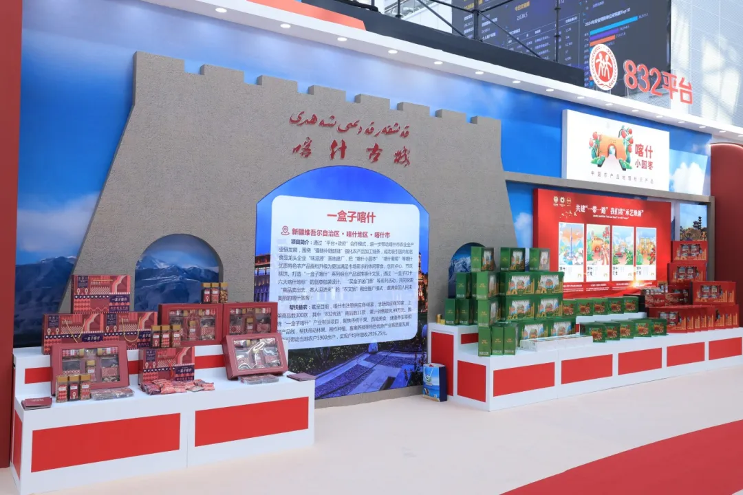 在展館入口的“832平臺(tái)成就展”,“產(chǎn)業(yè)幫扶示范縣”展區(qū)引人注目,9個(gè)“832平臺(tái)產(chǎn)業(yè)幫扶示范縣”展區(qū)以“一縣一品”優(yōu)勢(shì)特色產(chǎn)業(yè)為主題,各有特色,獲得社會(huì)各界的高度關(guān)注。