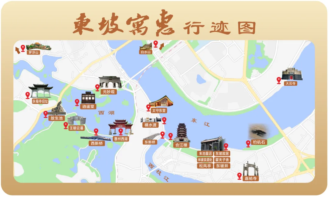 為深入貫徹習(xí)近平文化思想,進一步做好東坡文化的傳承與發(fā)展,弘揚優(yōu)秀傳統(tǒng)文化,堅定文化自信,營造濃厚的東坡文化宣傳氛圍,配合做好我市5月19日舉辦的“2024尋跡東坡--惠州City walk徒步活動”,在中共惠州市委宣傳部的支持指導(dǎo)下,惠城區(qū)在活動沿途涉及的11個東坡寓惠遺跡點(湯泉、大云寺、元妙觀、永福寺舊址、西湖、放生池、太守東堂、橫水渡碼頭、合江樓、東坡故居、釣磯石)制作了東坡寓惠主題小景觀,成為市民參與活動的打卡點,讓市民近距離了解東坡寓惠文化。