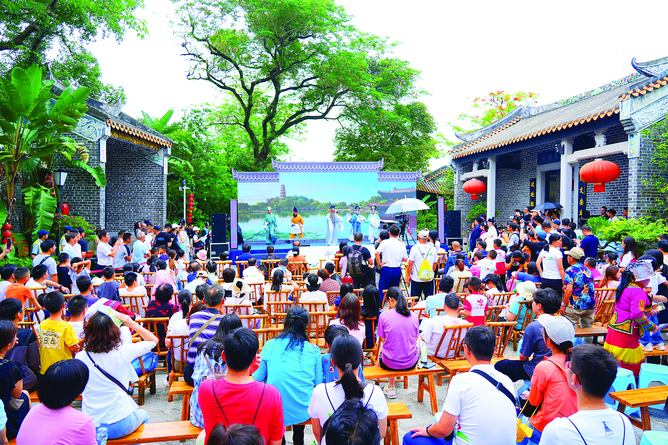 東坡粉絲大會(huì)在惠州蘇東坡祠舉行。臺(tái)上,東坡情景劇、漢劇《驗(yàn)祠》、歌曲《定風(fēng)波》等特色文化表演精彩紛呈。 惠州日?qǐng)?bào)記者朱金贊 攝