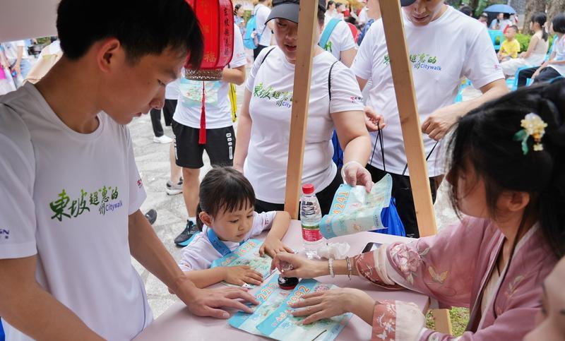 徒步愛好者在終點(diǎn)蓋章打卡。 惠州日?qǐng)?bào)記者朱金贊 攝