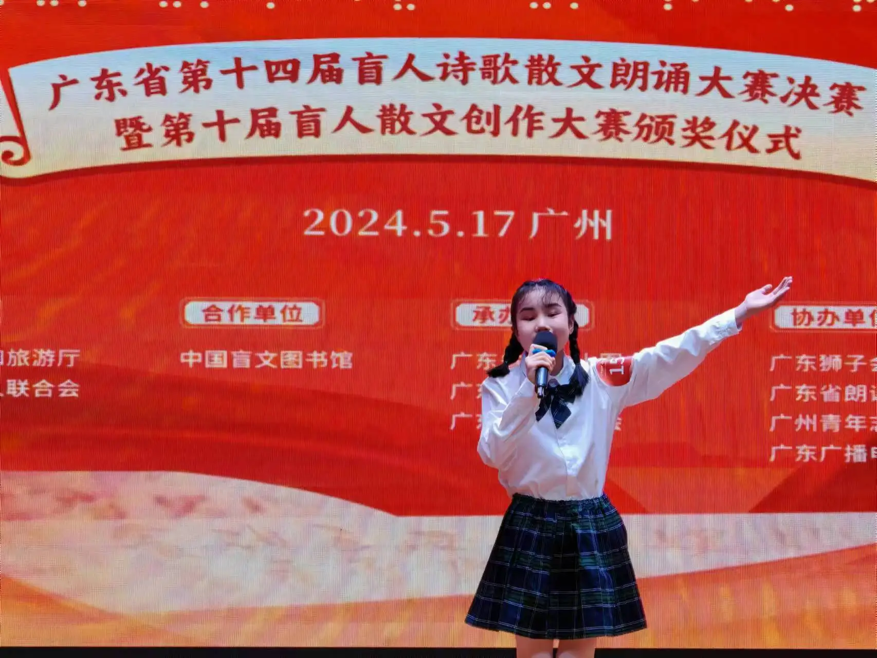 鐘瑜娜榮獲廣東省第十四屆盲人詩歌散文朗誦暨第十屆盲人散文創(chuàng)作大賽詩歌散文朗誦成人組一等獎(jiǎng),參賽作品:《會唱歌的鳶尾花》。