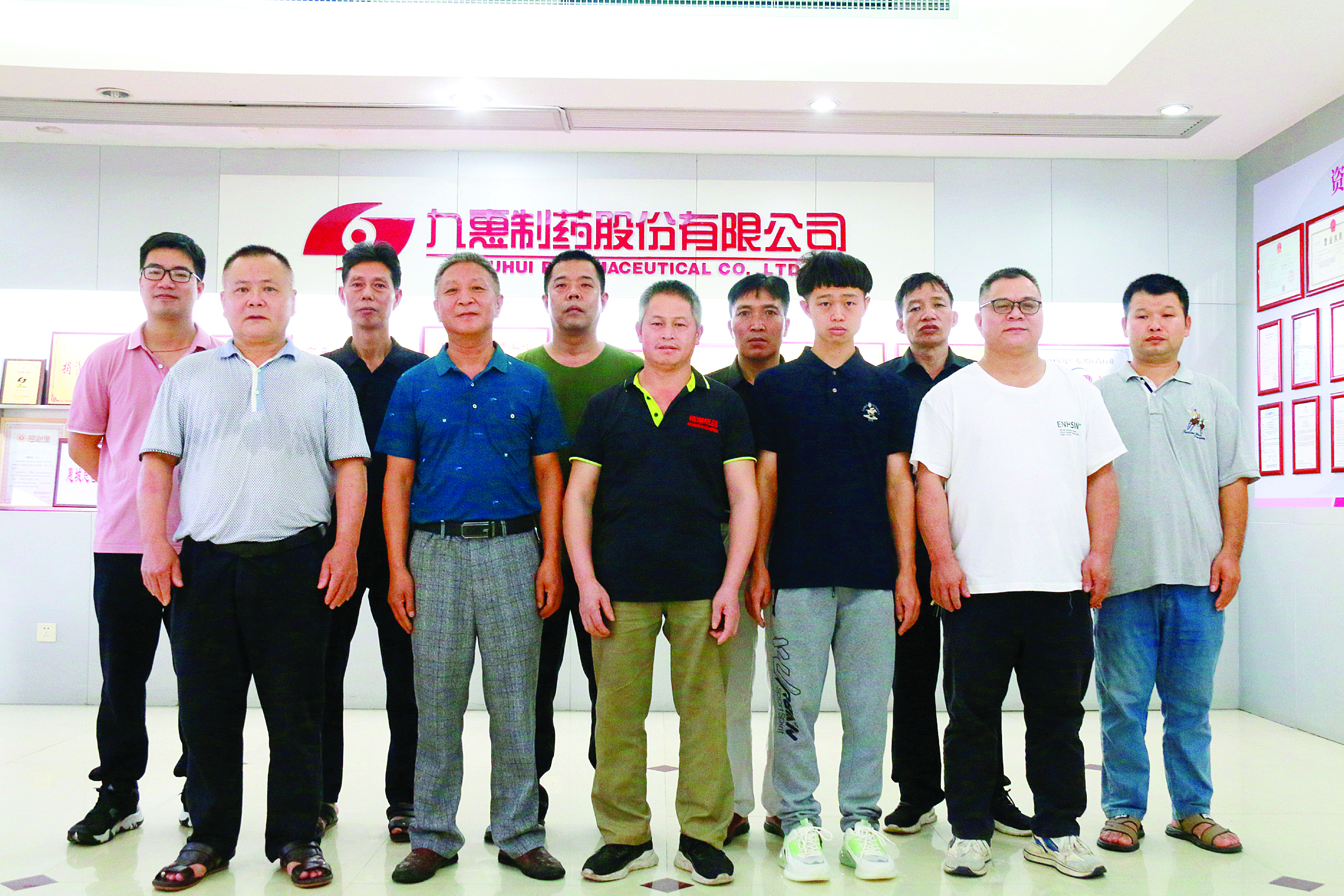 惠州市九惠制藥股份有限公司丸劑車間粉碎工序班組合照。