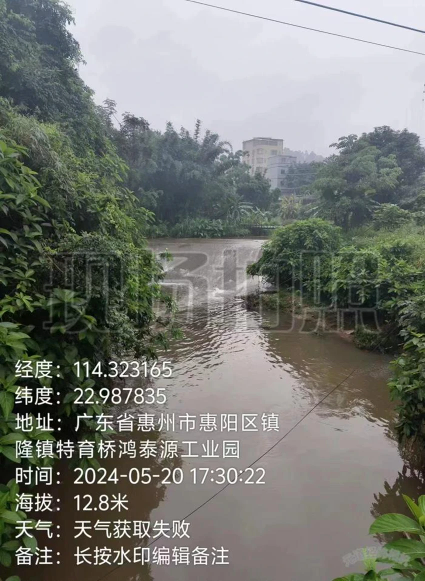 經現(xiàn)場核查和無人機巡查,最終鎖定污染源頭為惠陽區(qū)鎮(zhèn)隆壓縮中轉站收集的紅色水性染漿,因大雨沖刷導致污水進入河道,河水水體呈紅色。