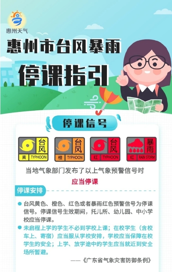 面對(duì)暴雨、臺(tái)風(fēng)等極端天氣很多惠州家長關(guān)心哪些情況下可以延遲上學(xué)?什么樣的預(yù)警信號(hào)應(yīng)當(dāng)停課?