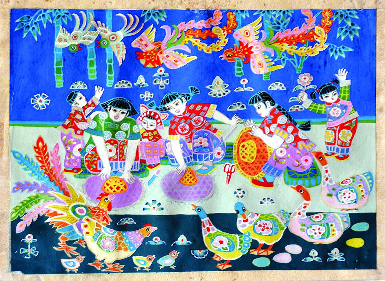 2004年,譚池發(fā)病逝,生命定格在六十五歲,在畫紙的尺寸之間寫下濃墨重彩的一筆。他的學(xué)生們接過(guò)龍門畫棒,成為龍門農(nóng)民畫的中堅(jiān)力量。龍門農(nóng)民畫,正張揚(yáng)著旺盛的生命力與創(chuàng)作力。(侯縣軍)