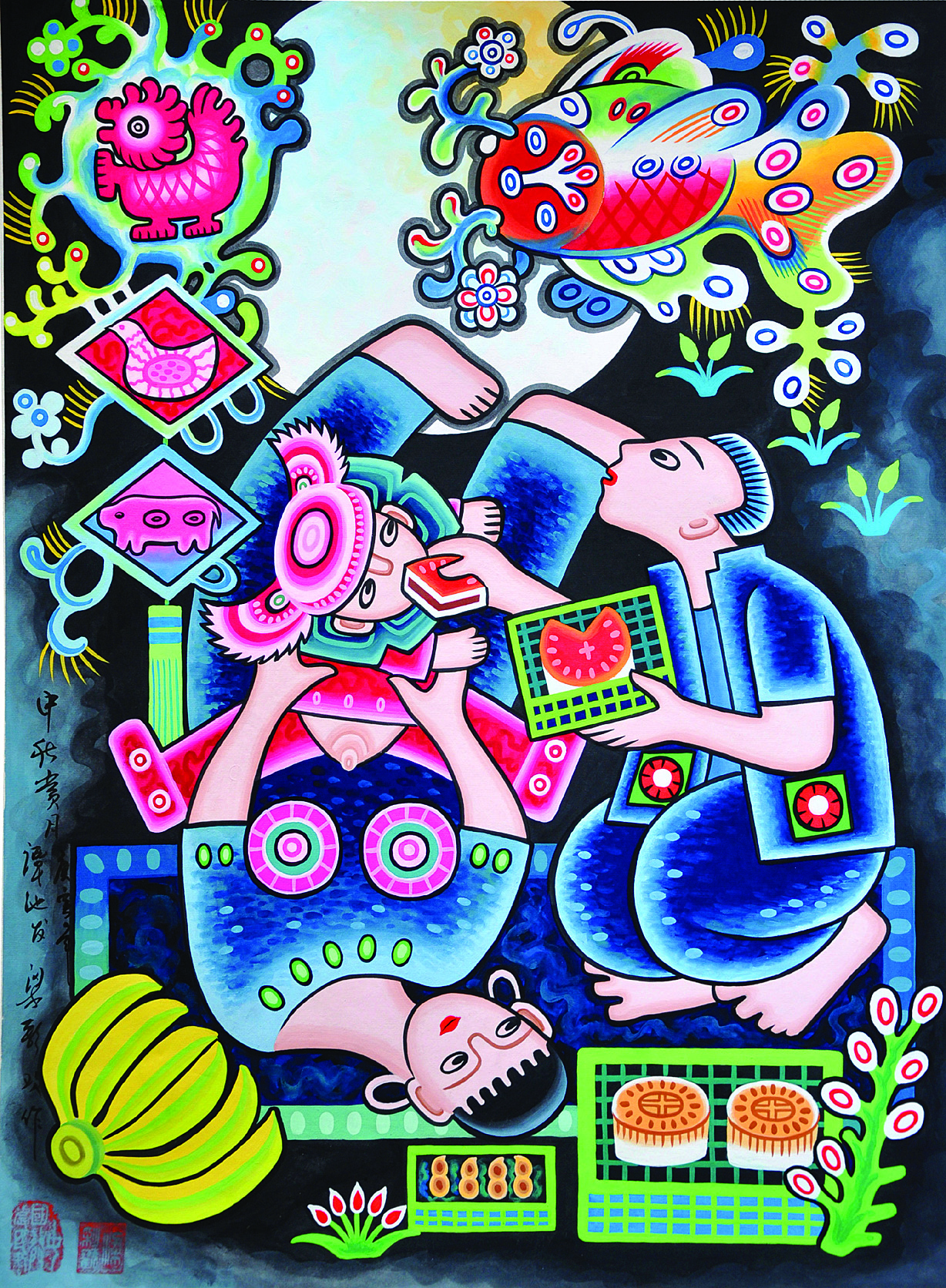 譚池發(fā)和學(xué)生梁彩歡的作品《中秋月夜》。
