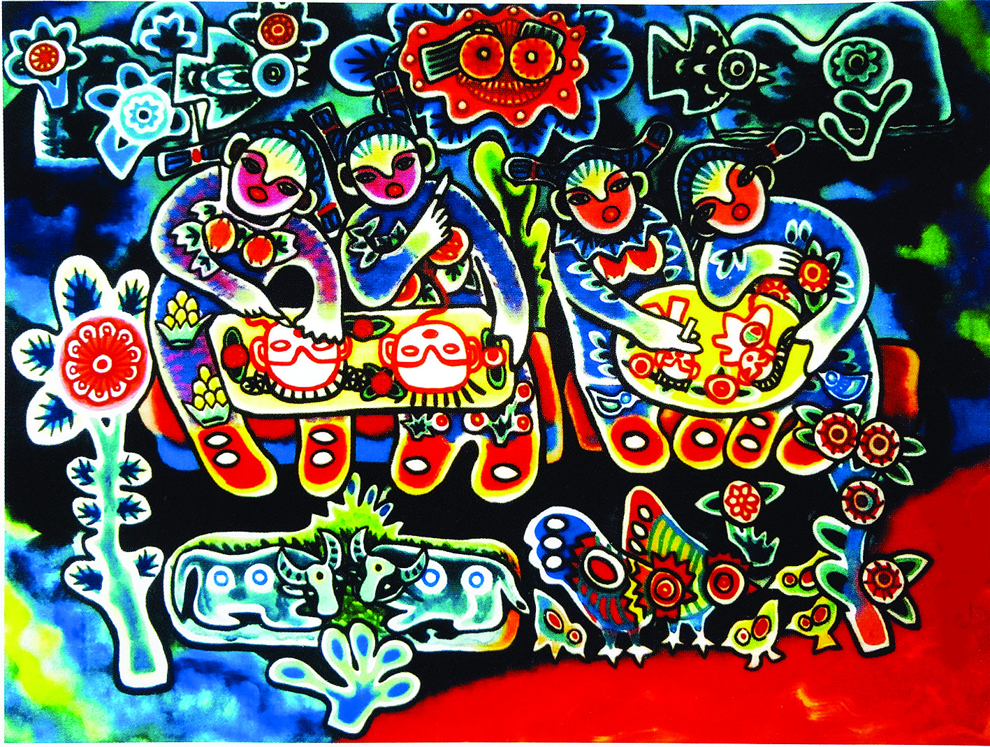 始創(chuàng)于20世紀(jì)70年代初期的龍門農(nóng)民畫,植根于龍門多彩的民俗風(fēng)情的土壤中,展現(xiàn)南國(guó)地域傳統(tǒng)民俗文化,具有淳樸自然的鄉(xiāng)土氣息和嶺南色彩。
