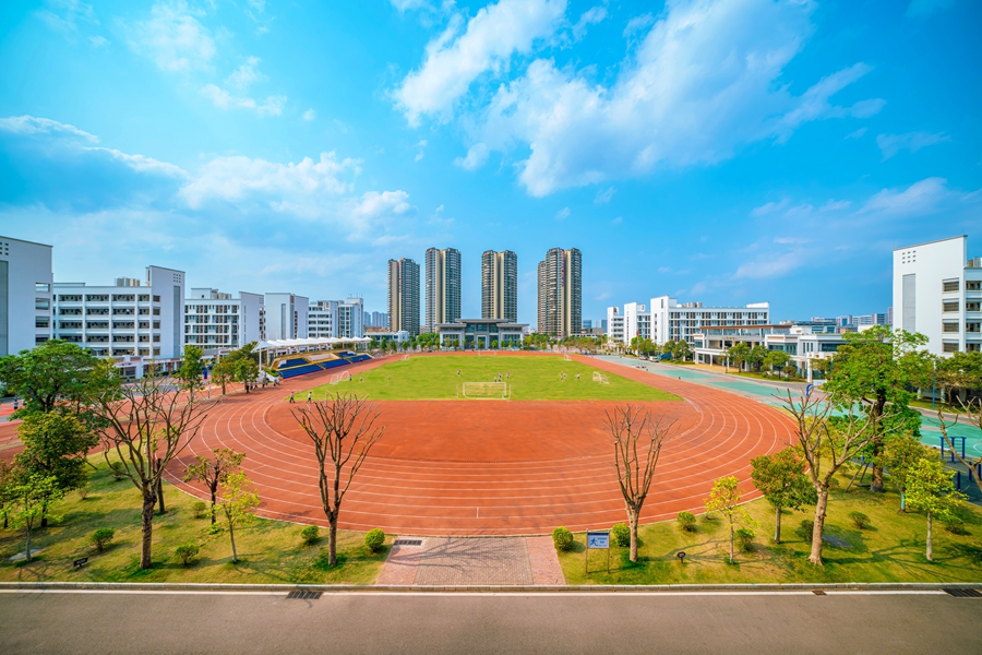 圖書館、體育館、游泳池、400米標(biāo)準(zhǔn)運(yùn)動場、籃球場、排球場、網(wǎng)球場,高標(biāo)準(zhǔn)生物園(生物教學(xué)實(shí)踐基地)、地理園、理化生現(xiàn)代化實(shí)驗(yàn)探究室、球體天象館、錄播室、創(chuàng)客室等一應(yīng)俱全。高標(biāo)準(zhǔn)設(shè)計(jì)實(shí)驗(yàn)室、體育館,課室均按AI課室標(biāo)準(zhǔn)建設(shè)。
