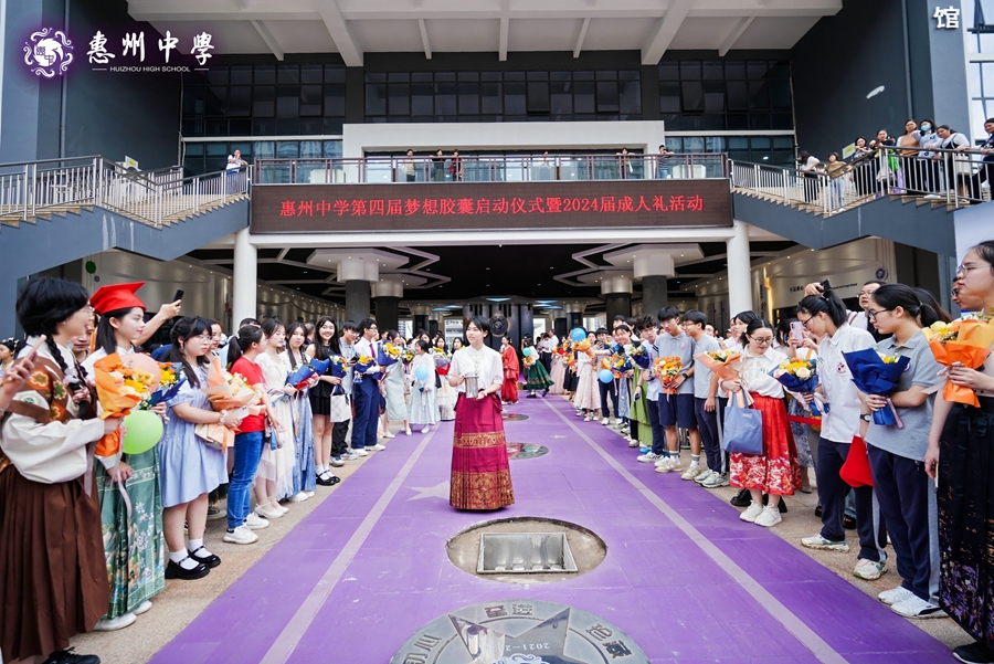 3.“成人禮”上立志,“夢想膠囊”啟航。在18歲成人禮之際,鴻鵠學(xué)子們?yōu)槿松N下一份獨(dú)屬于自己的夢想,將其封藏于惠州中學(xué)梧桐館下,于20年后再開啟。屆時(shí),昔日的惠中學(xué)子將重返這片土地,啟封青春時(shí)珍藏的夢想,感受自己一路走來的成長與蛻變。