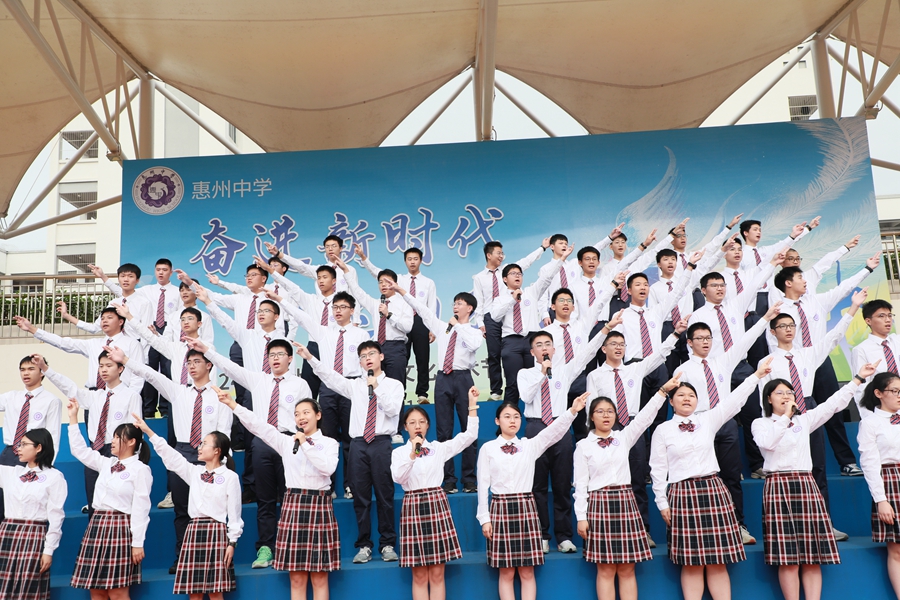 惠州中學(xué)四周遍栽鳳凰樹,“葉如飛凰之羽,花若丹鳳之冠”,如無數(shù)鳳凰展翅欲飛。鳳凰涅槃,浴火重生,是極具生命力的代表。為此,惠州中學(xué)選擇“鳳凰”作為“生命力學(xué)校”的象征,寓意“育五彩繽紛之才,筑五彩人生之基!