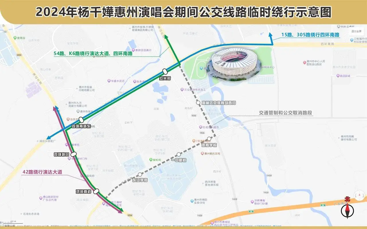 6月1日,楊千嬅惠州演唱會(huì)舉行,我市交警部門將對(duì)惠州奧林匹克體育場(chǎng)及周邊部分道路實(shí)施交通管制,不設(shè)停車位、不允許臨時(shí)停靠上下客。記者從惠州市公共交通管理有限公司獲悉,當(dāng)天,我市部分常規(guī)公交線路將采取臨時(shí)繞行措施,同時(shí)開通接駁專線。