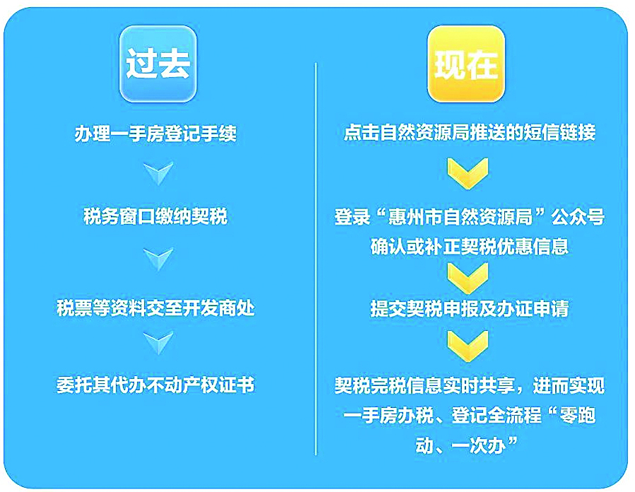 惠州市一手房辦稅辦證流程對(duì)比圖。 來源:惠州市稅務(wù)局
