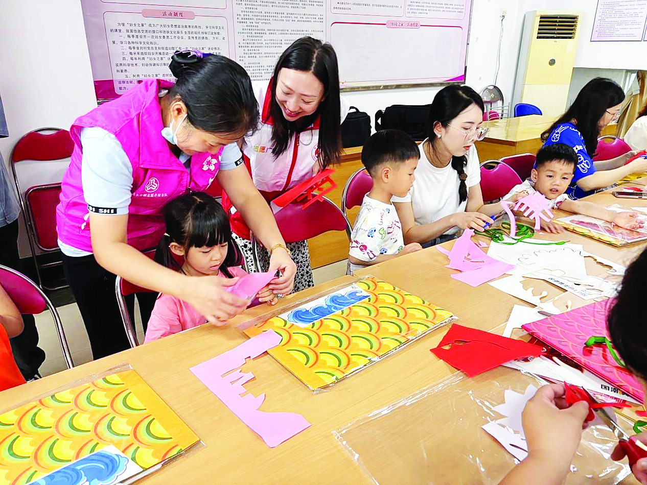 小朋友在學(xué)習(xí)制作“龍舟”。