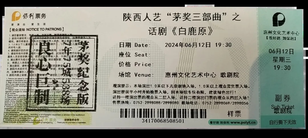 特別推出惠州第538場專屬紀念票根